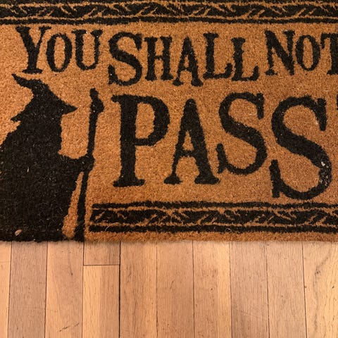 Hei, Selger min fine dørmatte med skrift for at dattera mi ikke liker den.Den er til overs nå .😀