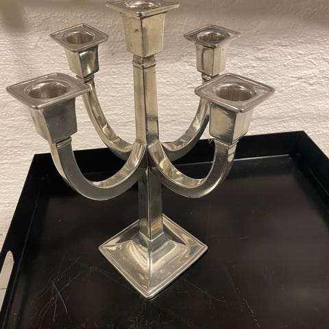 Håndstøpt tinn med dekorative detaljer. Fremstår i meget god stand, lite brukt og godt tatt vare på. Perfekt som gave, samlerobjekt eller dekorasjon.