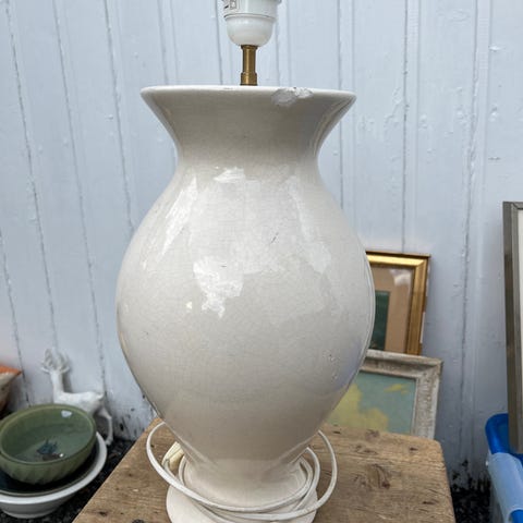 Lampen er hovedsaklig av messing med marmorsten i bunn, blader av messing og roser av porselen.