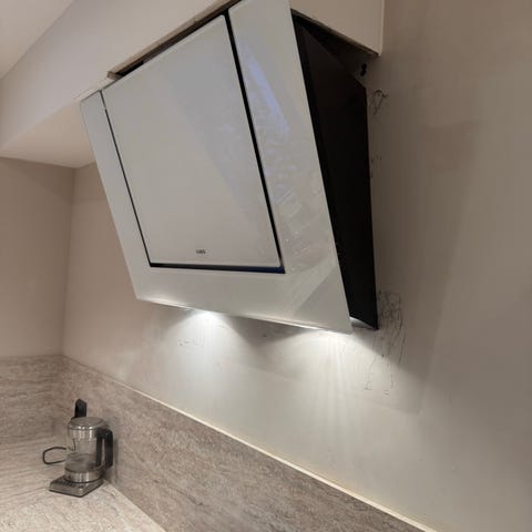 Eico LUCCA P 60 ECO kjøkkenvifte i rustfritt stål. Designet for ventilasjon over komfyr eller kokeplate. Monteres på vegg. Kjøpt ny i 2021.