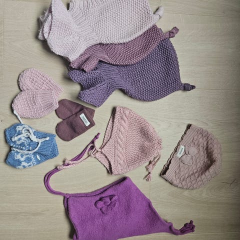 Hodeplagg i ull til baby, balaklavaer, luer. 41 cm, 1-4 mnd