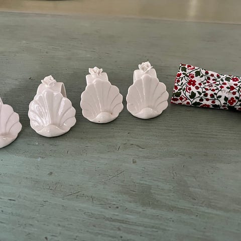 Selger skalldyrservise da det nesten ikke er brukt. Flotte farger på serviset.