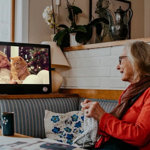 KOMP smartskjerm med videoanrop, bildevisning og meldinger for familiekommunikasjon mellom KOMP og mobiltelefoner. Designet for brukere med ingen teknologisk erfaring eller nedsatt motoriske ferdigheter. Fra leverandør: "Komp er til stor glede for både de eldre, familien og helsepersonell. Den sosiale kontakten har økt, eldre føler seg mer inkludert i familiens hverdag, og bildene som rullerer på skjermen har bidratt til bedre samtaler mellom beboere og helsepersonell." les mer: https://komp.family/?srsltid=AfmBOorWwrbzOFUYgbsnFPhfXwnyVgwg16qD8r2AIuLrh-xNicLLny1S