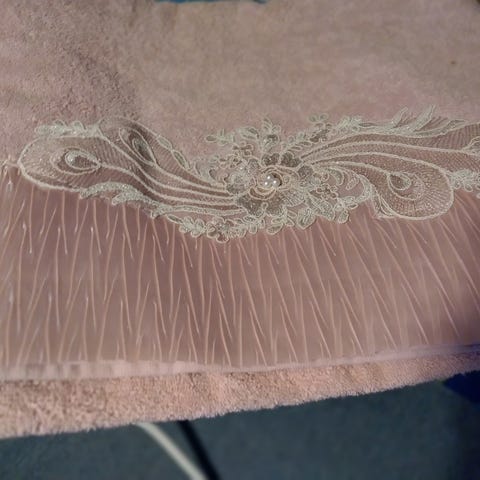 Badehåndkle i turkis farge med sløyfedetalj på toppen. Materialet er mykt og egnet for bruk etter bading eller dusjing. Håndkleet har en elastisk del som gir god passform ved bruk.