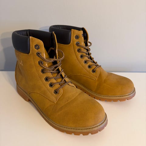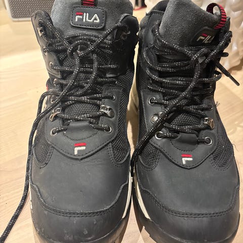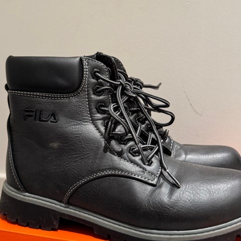 Fila vinterstøvler i størrelse 44, beige farge. Støvlene er designet for vinterbruk og har snøring foran for justering. Materialet er slitesterkt og egnet for kaldt vær.