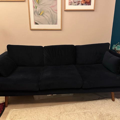 Selger en sofa fra Bolia, pent brukt. Noe varierende lys på bildene, sofaens farge gjenspeiles best på siste bilde. Kjøpt brukt på finn for noen år siden. Følger med 4 stk puter. Mål er oppgitt i annonsen. Kan hentes på Løren i Oslo, 5 etg med heis.