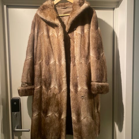 Vintage pels lang str M-L fra Aksel Rontén Oslo Pels