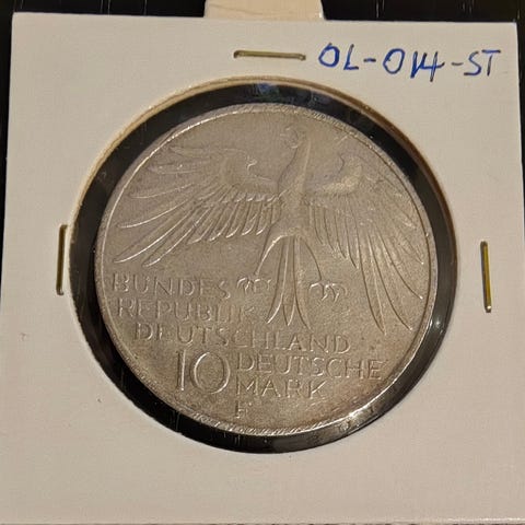 Strøken 10 DM mynt fra Tyskland - OL'72 - OL10-013