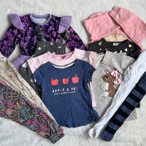 Klespakke med kjoler, skjørt og topp i str 104
