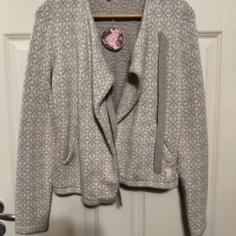 Odd Molly Cardigan i størrelse S, farge grå, laget av bomull. Cardiganen har knyting i front og lommer, og er designet for kvinner.