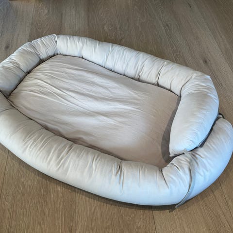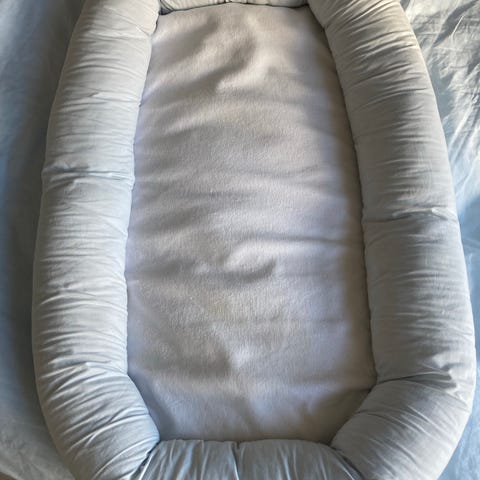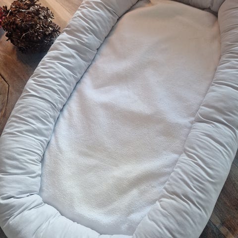 Grått babynest fra Babydan. Pent brukt til ett barn. Trekket kan vaskes.