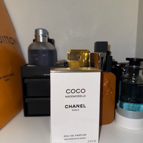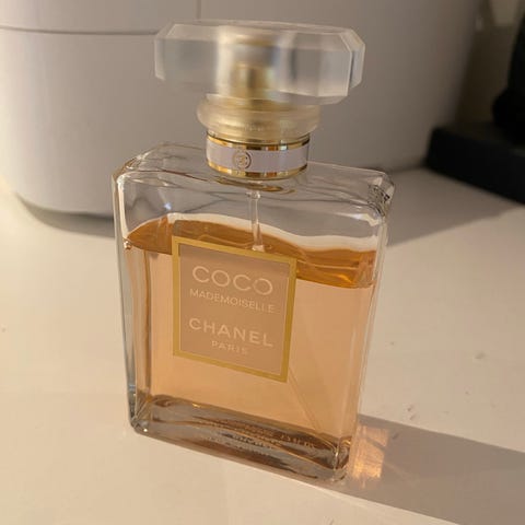 Chanel Coco Mademoiselle parfyme med flytende innhold i en glassflaske med etikett på fronten. Produktet er beregnet for bruk som duft.