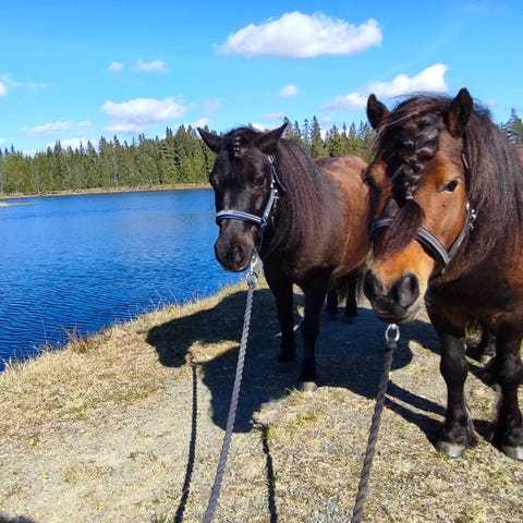 Du som hesteeier har kun ansvar for å møkke 2 dager. Jeg møkker resterende dager, sørger for høy, vann og tilsyn.