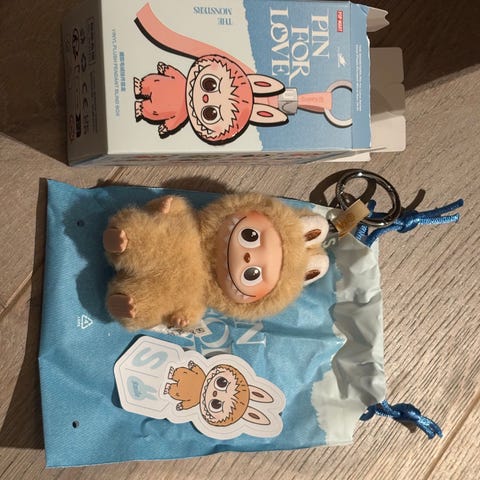 Autentisk fra popmart. Qr kode kan scannes. Den nye pin for love- serien. Sjekk mine annonser for andre bokstaver.