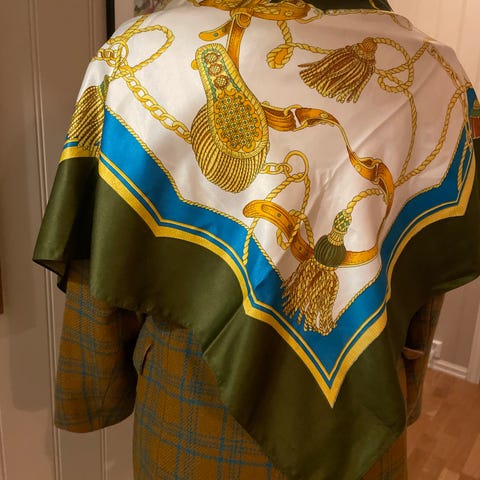 Vintage 70-talls stilig beige plissert skjerfsjal.