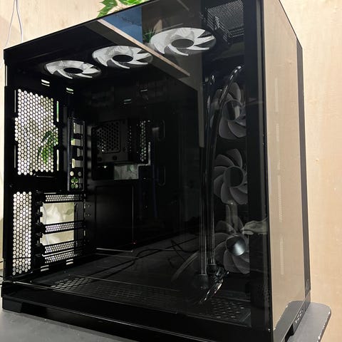 Selger dette kabinettet da jeg har gått for et lite. Lancool 3 har dører med temperert glass og innebygde RGB-vifter. Kabinettet har god plass for komponenter og optimal luftstrøm med flere vifteplasser. Aldri vært bygget i.