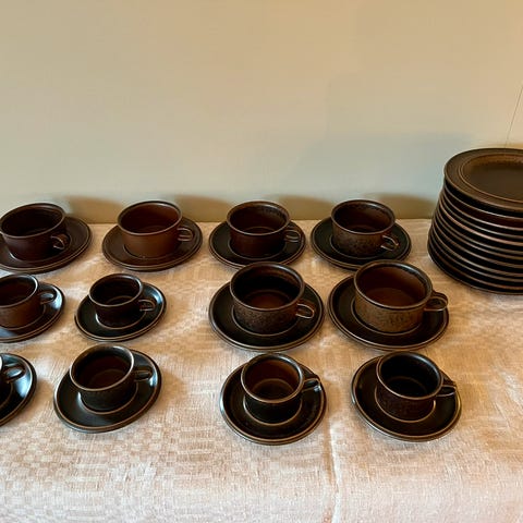 Settet er i fantastisk stand fremstår som nytt. 290 pr sett. Kaffekopp med skål 100. 3 sett.
