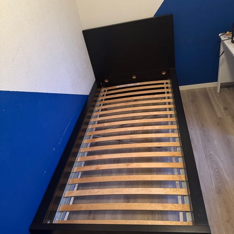 Selger en MALM seng med oppbevaring under i brunsvart. Madrass kan følge med om ønskelig. Den er hel og ren. Alltid brukt overmadrass og madrassbeskytter over.
