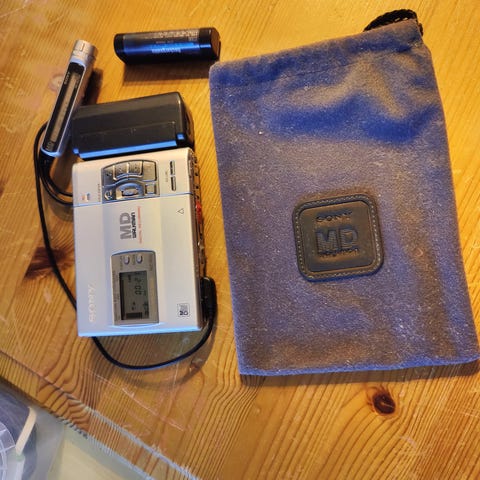 Sony MZ-R900 MD Walkman minidisc spiller i svært god stand. Se bilder. Ingen skader. Følger med original inline fjernkontroll, original optisk kabel, strømadapter, batterikassett for AAA batteri og originalbatteri og bæreveske.