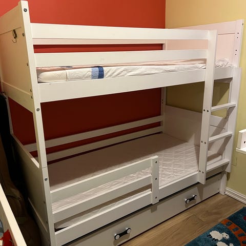 Kan følge med to madrasser på 90x200 mot tillegg i pris: