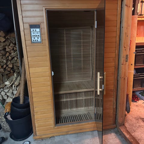 Sauna kjøpt for noen år siden Sparmax. Den har blitt brukt noen få ganger og har får det meste stått demontert. Fungerer fint og er i god stand.