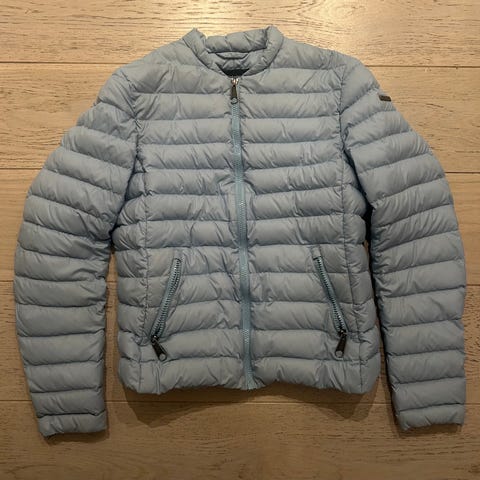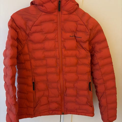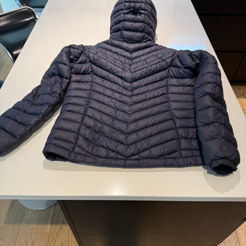 Selger en lett og pent brukt dunjakke. Perfekt for tur og utendørs aktiviteter, vinter som høst - alt avhengig av hva du har under. Normal i størrelsen, setelengde, og plass til tykk genser under.