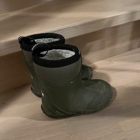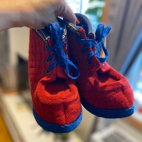 Skoene har et ytre materiale i ull- filt med blå detaljer og en innvendig fôr i ull Sålen er laget av gummi med mønster for grep. Skoene er egnet for barn og gir varme og komfort.