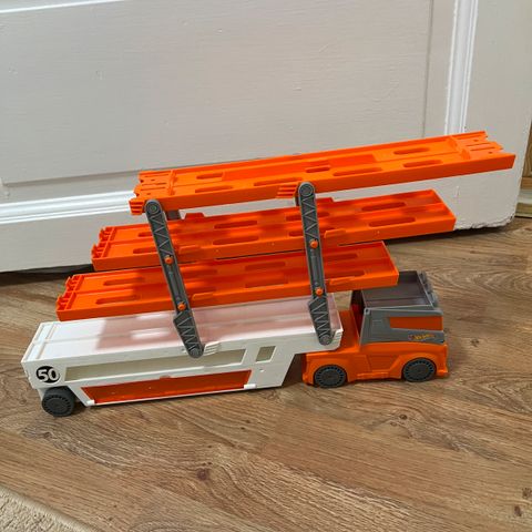 Hot Wheels biltransporter/lastebil. Designet for å transportere og organisere Hot Wheels-biler.