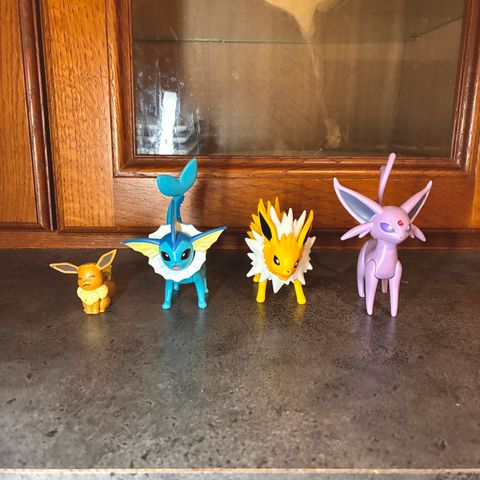 Pokémon kosedyr sett bestående av fire myke figurer: Pikachu, Eevee, Squirtle og Charmander. Kosedyrene er laget av stoff og egner seg for barn som leker eller samler på Pokémon-figurer. Selges samlet for kr 600