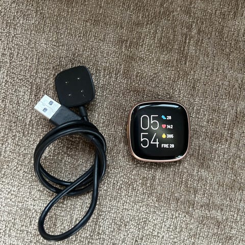 Svært lite brukt Fitbit Versa 4 smartklokke selges for 1000 kr. Kjøpt for nøyaktig 2 år siden, nypris 2290 kr. Kun vært med på noen få turer, ligget i en skuff siste året.