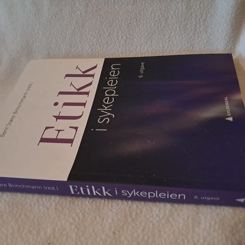 Gyldendal Etikk i sykepleien lærebok, 5. utgave. Boken omhandler etiske problemstillinger innen sykepleie og helsevesen, og er relevant for studenter og fagpersoner innen helse og medisin.