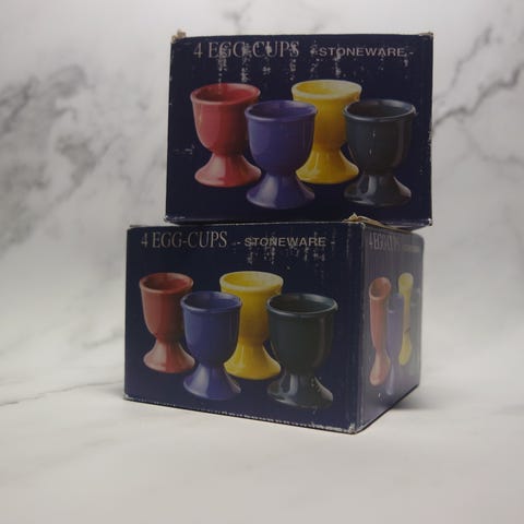 Egg Cups 3-pack med dyremotiv, laget av keramikk. Hver eggeglass har et unikt dyremotiv, egnet for servering av egg. Designet for praktisk bruk ved frokostbordet.