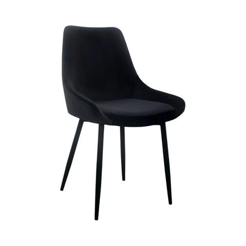 Selger 4 spisestoler fra Bohus. Stolene har svartlakkerte trebein og grå pute.