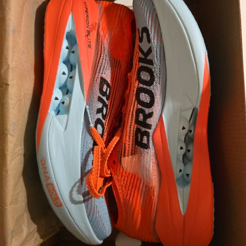 Skoene er kun brukt en gang på mølle (4km). Ser derfor helt ubrukte ut.