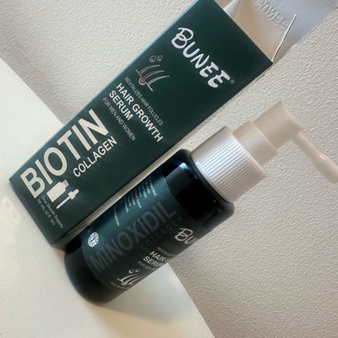 Har noen nye pakker med Minoxidil 5% dusjspray til stimulering hårvekst og motvirke håravfall.