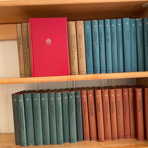 40 bind. Mye klassisk litteratur og møblert hjem for pengene.