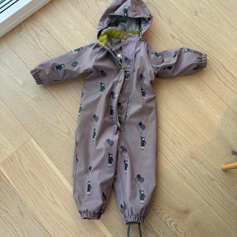 Supergod helårsregndress fra Kattnakken. En favoritt hos oss. Dressen har ingen synlige slitasjer og er pent brukt. Strikket til å feste under skoen og knappene den hang i, er røket. Men det er lett å fikse og ikke synlig.