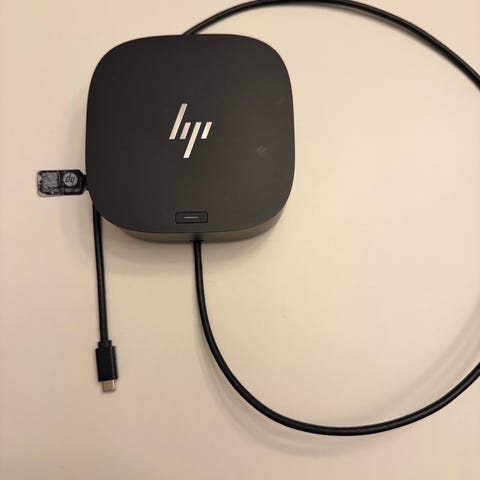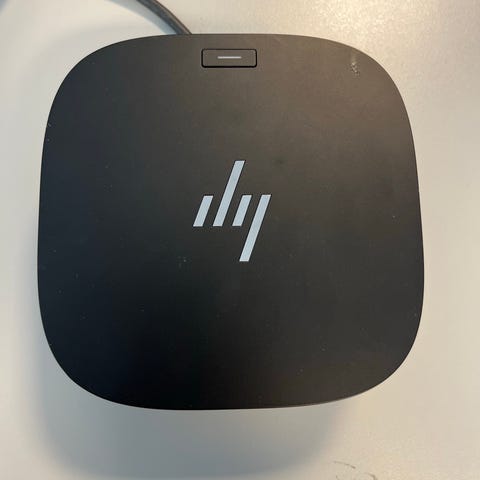 HP Docking Station Adapter G5 med flere tilkoblingsmuligheter inkludert USB-porter, HDMI-utgang og nettverksport. Adapteren er designet for å koble til eksterne enheter og skjermer, og gir enkel tilkobling for bærbare datamaskiner. Nesten ubrukt.