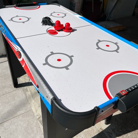 Skikkelig kult X-Sports Airhockey og bordtennis spillebord med en størrelse på 112 x 56 cm. Spillbordet kombinerer to spill i ett med airhockey på den ene siden og bordtennis på den andre. Passer til innendørs bruk. Kjøpt i 2025. Alt følger med.