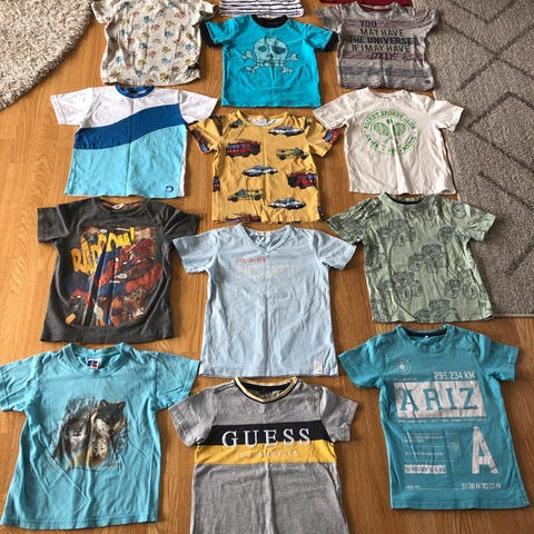 4 pent brukte skjorter selges samlet. 2 kortarmet, str 116 og 122, 2 langermet str 122 og 128.