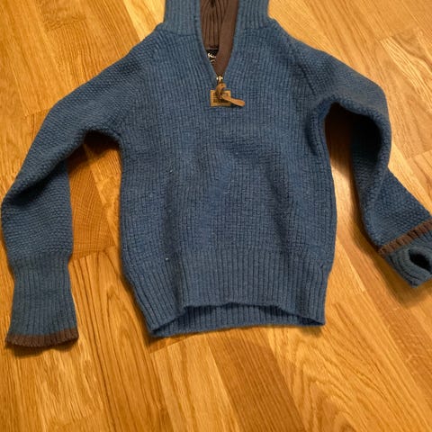 Vikafjell genser med glidelås. 50%ull og 50% akryl. Str 122. Svært lite brukt, ser ut som ny.
