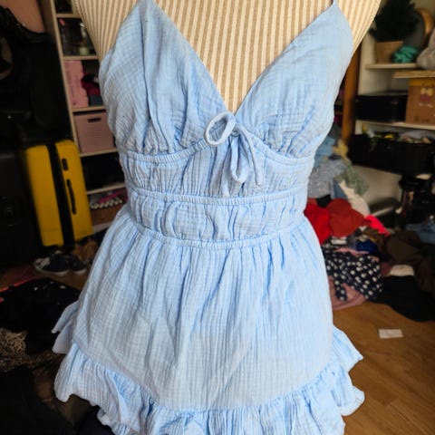 Lett blå sommerkjole med krage.