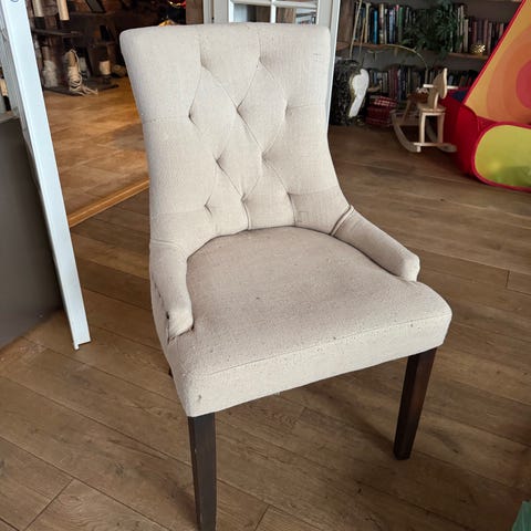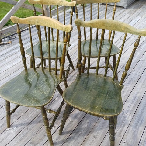 Jeg selger to stilige stoler som trenger litt arbeid, spesielt setene. De er fortsatt brukbare, så prisen er veldig lav.