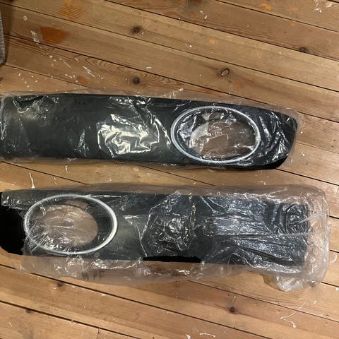 Selger 3 stk emblemer (2 front og 1 bak) til VW T5.1 Del nummer: 7E0853601D. En original farge og 2 sprayet i svart matt. 100 per emblem. Diameter på front er 165 og bak 130 mm.