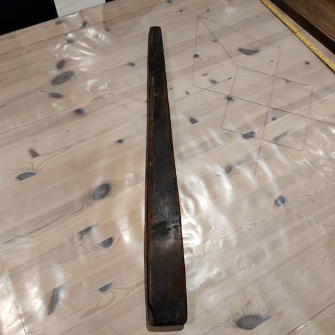 Sannsynlig datering 1850 - 65. Messing som har fått patina (ikke pusset). Britisk. Lengde 12 cm.