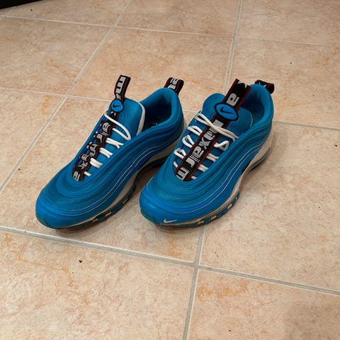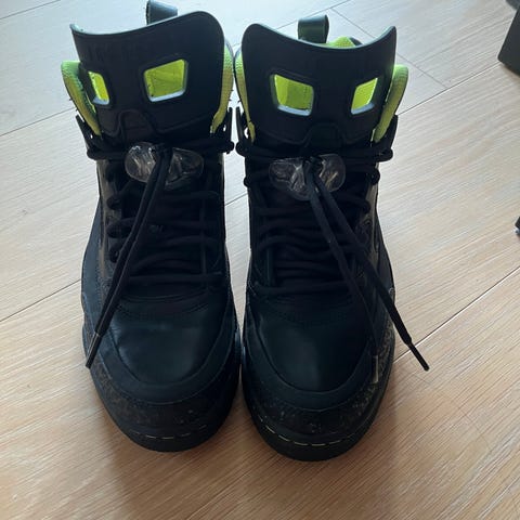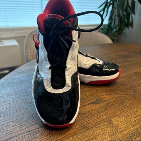 Air Jordan Sneakers joggesko i størrelse 38. Brukt 1-2 ganger, så de er i veldig fin stand. Vanskelig sko å få tak i, samt dyrt. Skoene har en kombinasjon av svart og rødt materiale, med høy ankelstøtte og klassisk design. Selges grunnet at de blir brukt for lite.