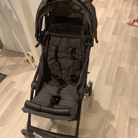 Britax B-Agile vogn i grå farge. Vognen har justerbar ryggstøtte, solskjerm, sele og stort understell . Den er tidligere brukt som reisevogn. Selges billigere ettersom den mangler frontbøylen som vises på første bilde.