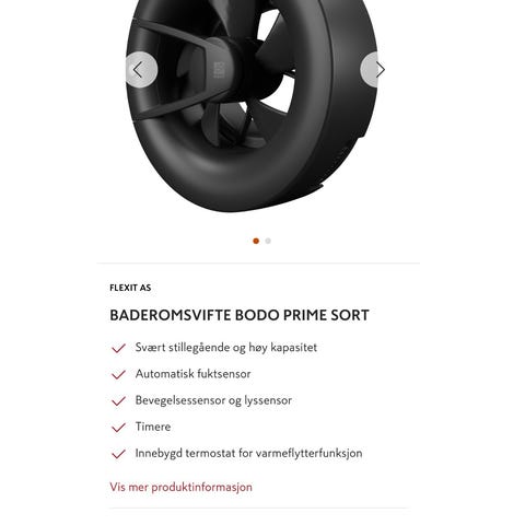 Flexit Roomie One V2 romventilator i svart farge med integrert WiFi. Designet for enkel installasjon i rom for å sikre god ventilasjon. Produktet har energieffektiv drift og stillegående funksjon.
