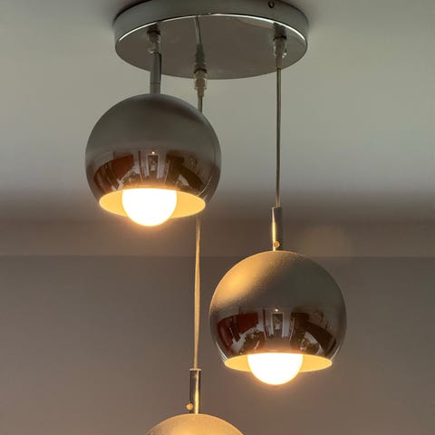 Sjeldent pen og velholdt, vintage tak/hengelampe i opalglass. Gir et varmt og pent lys, alt etter hvilken lyspære man velger å bruke.