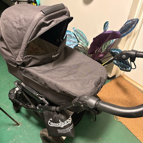 Vi selger vår pent brukte Emmaljunga Edge Duo, i fargen grå. Vogna var ny i 2016, og vi kjøpte den brukt i 2024. Vi har vært veldig fornøyde med den.